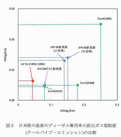 マツダのNOx制御技術)において、マツダは後処理装置なしでヨーロッパの排出ガス規制(EURO6)をクリアしている唯一のメーカーであること、アメリカでも後処理装置なしでディーゼル乗用車の販売を目指していること、を書きました。