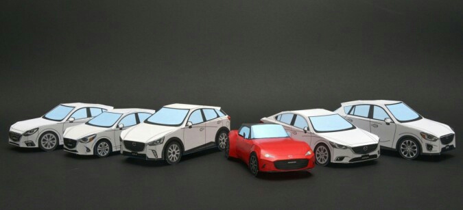 マツダ公式ブログに、マツダの新世代商品群(アクセラ、デミオ、CX-3、ロードスター、アテンザ、CX-5)のペーパークラフトが掲載されています。
