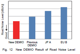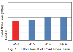 本文によると、「ボデーの車室内空洞共鳴とサスペンションの共振周波数を離間することにより,新型デミオ・CX-3ともに競合車と同等以上のロードノイズ性能を達成、一般的に相反する軽量化やダイナミクス性能と両立できた。」とあります。